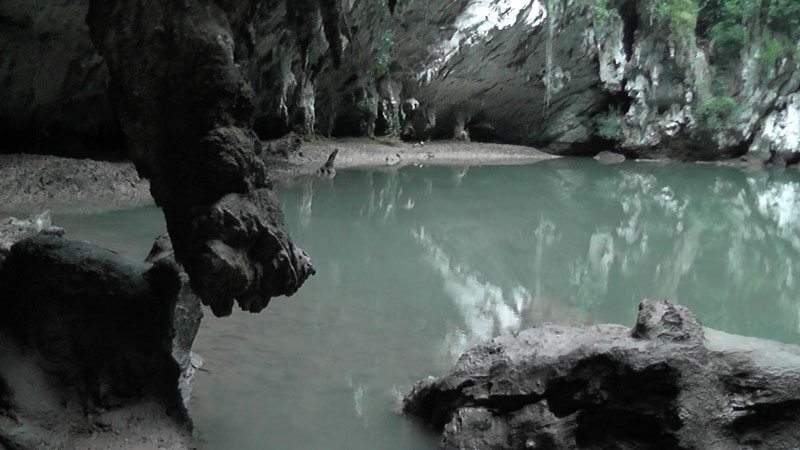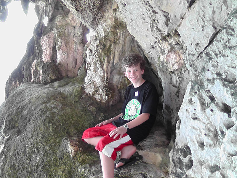 This is the biggest of the islands we have been on and it has some cool caves to explore while we are killing time waiting for the long tail to take us back. There are also some interesting rock formations where the limestone has eroded away, and Nick puts on a climbing demonstration that would make Rudy cringe.