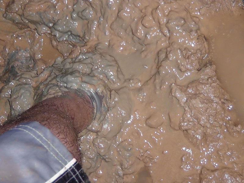 The tide that feeds the lagoon is out, so the ground we are able to walk on is like quicksand, and I suspect the final resting place of many a flip flop. Back home, soaking in this kind of mud would cost a few hundred bucks in a fancy spa, so I feel obligated to partake.