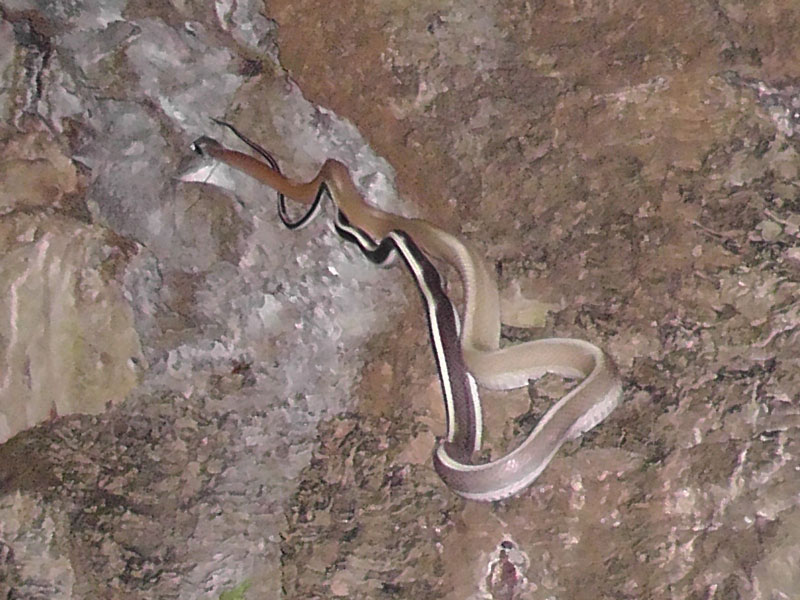 Heading back up the rock wall, we stop at one of the ropes to let a group of Australians finish descending. As the last one gets to the bottom, he reaches out to grab another rope for balance, jerking it back at the last second when all six feet of it moves. His buddies, who are 30 feet further down, assure him there is nothing to worry about, but perspective is everything, and I suspect if I was 30 feet further away, it wouldn’t look that dangerous to me either. Fortunately, recognizing that Nick is too stringy to make much of a meal and that I would be old and chewy, it heads off in the opposite direction and we continue on our way back up.