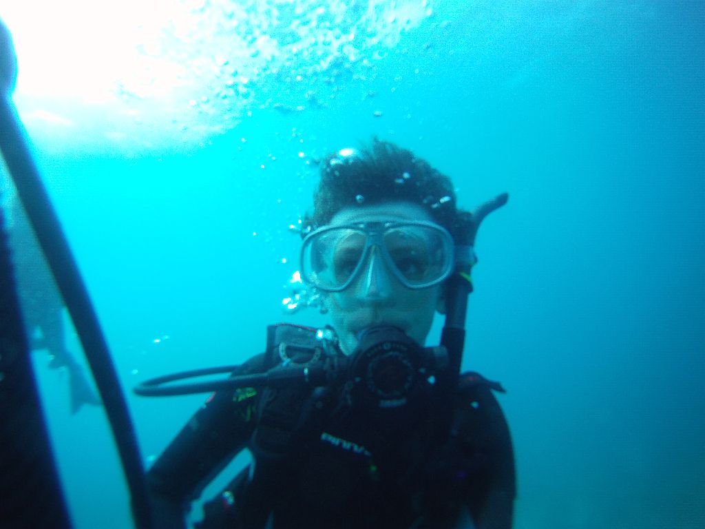 We arrive at the dock to find that with the exception of one other person, we are the only ones going out this morning. The boat is on the small side (max is 6 divers) and will be a bit different experience for Nick (no buffet lunch or jumping off the top deck), but the sites are not far offshore so we won’t be spending much time on it anyway. The upside, is that they give Nick the option of rolling into the water backwards off the side which he is pretty stoked about.