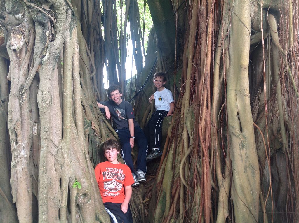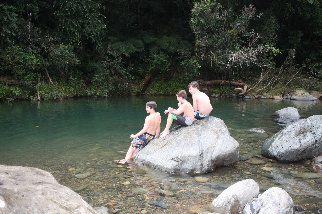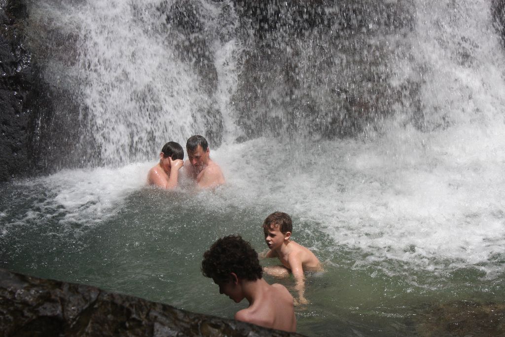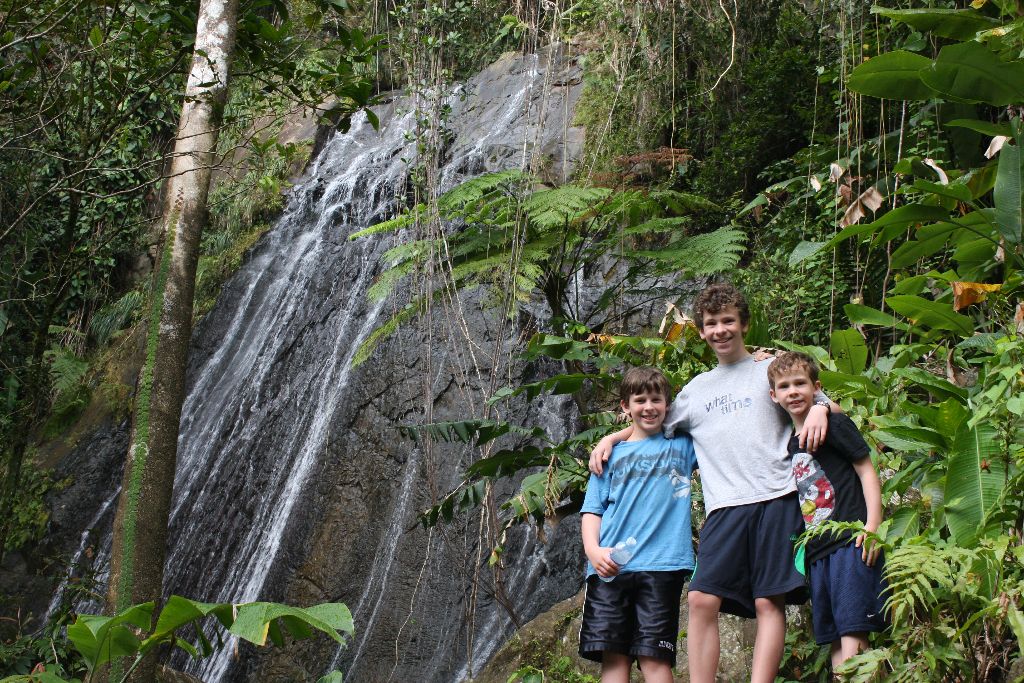 We know we’ve discovered a good spot when the boys wake up asking if we can go back to Carlos’ place. There really isn’t anything else we have left on our must see list, so after some breakfast, we pack up a bag and head back towards El Yunque. Since it’s a weekday, the place is even more deserted than it was the last time around, and after a short hike in from the road (passing a work crew of convicts on their way out, which gets Ang all squirrelly), we find it completely deserted. The rope swing, the calm pools for swimming, and acres of boulders for scrambling, all for us.