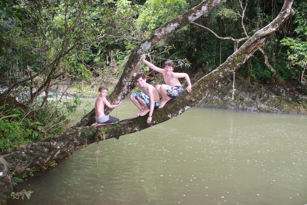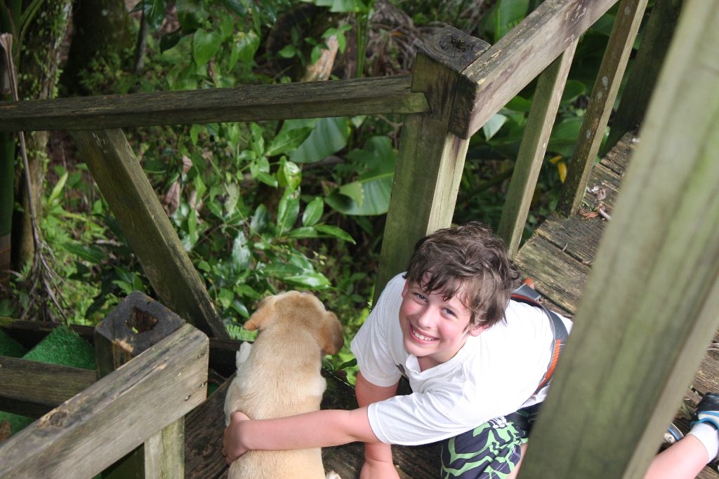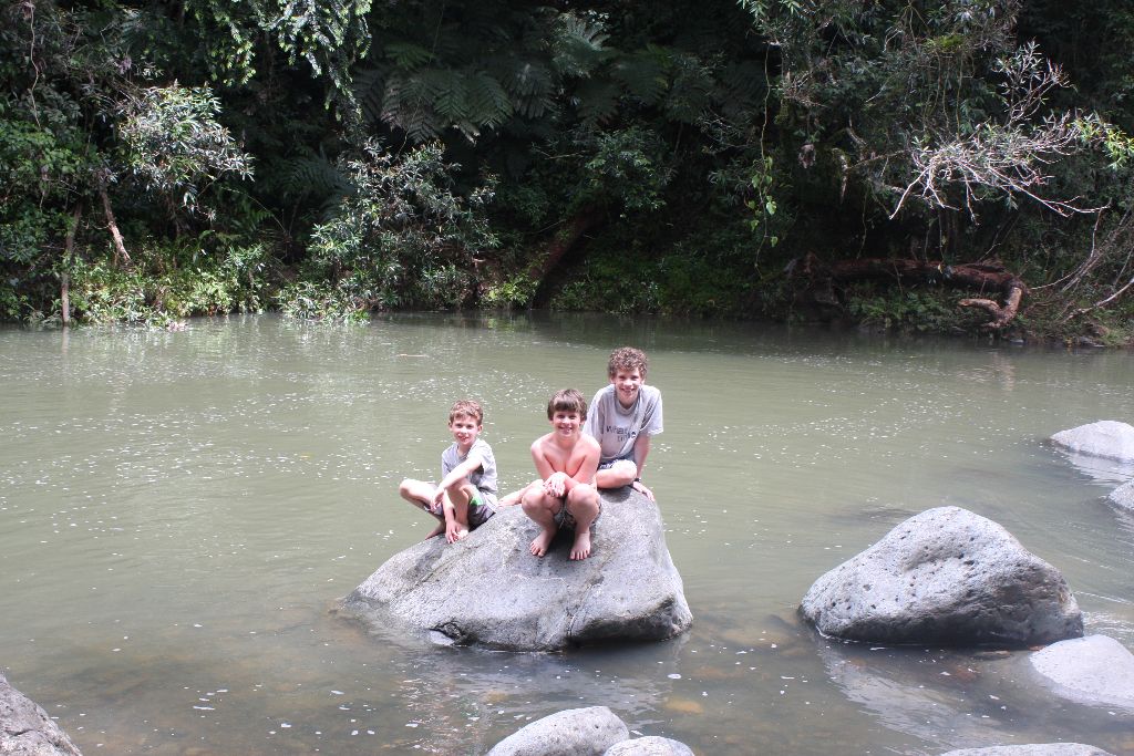 Crisis averted, we head back down to the tourist station, where Mom gets some new tips from a much more enthusiastic park ranger named Carlos. He tells us of a place back down the mountain that the locals go, where there is a river deep enough for swimming and a rope swing for the kids. The top of El Yunque is socked in with clouds and doesn’t show much promise of clearing up, so we opt to take Carlos up on his advice and head down.