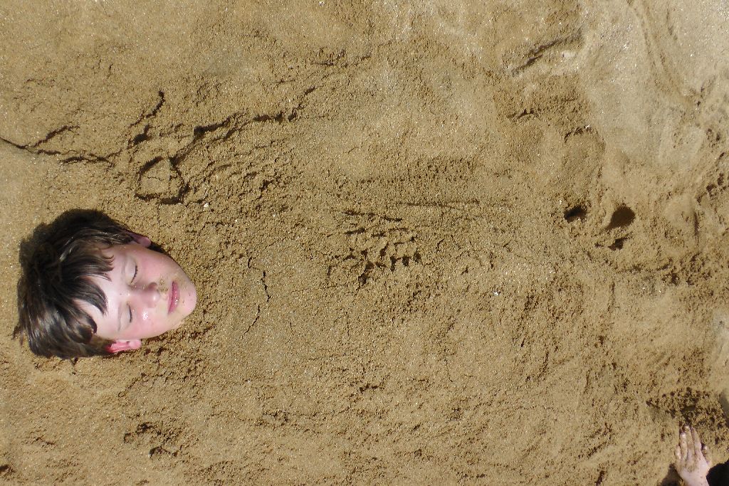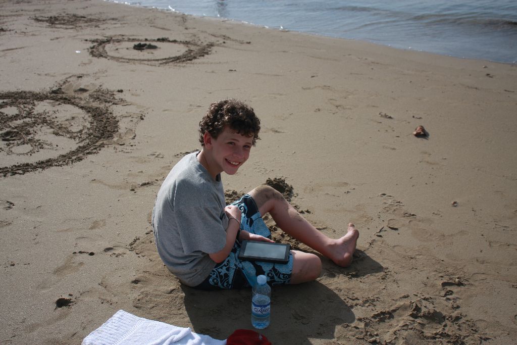 Once the kids show up, our day consists of little more than alternating between pool and beach. Sam and Joey try some body surfing, and end up stalking some poor lady and her daughter, telling them all about the waves in Hawaii and how they tamed them.