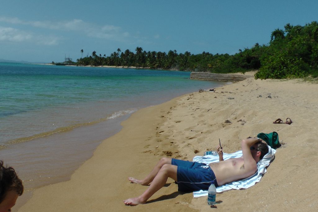 Ultimately, we make our way back to Luquillo Beach, this time not for the food shacks, but to actually check out the beach itself, which our guide book says is one of the best in Puerto Rico. It is an amazing bay with calm water and wide stretches of sand, but sadly, seems poorly maintained as there are plastic bags, empty water bottles, and other pieces of garbage everywhere. Maybe we just picked a particularly bad time – after the weekend horde but before the clean up crews arrive – but from what I see here, the beach in front of the Hilton kicks this one’s butt.