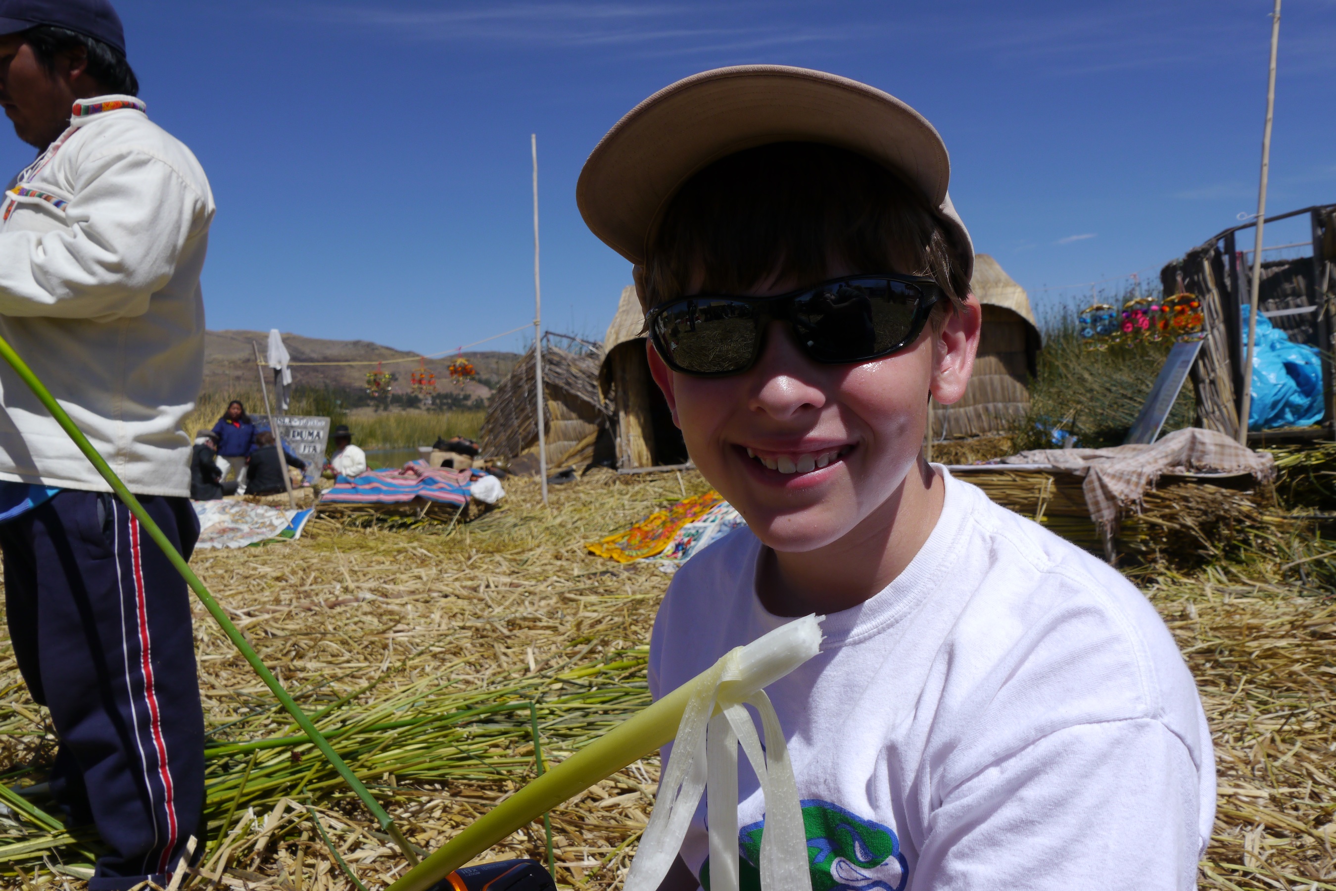 Our next stop is Taquile Island, about a hour away. This should be a piece of cake, but the storm has roughed up the water quite a bit, and our captain seems set on catching as many waves broadside as he can. Sam is getting a little green by the halfway point, and while he keeps pretty quiet about it, seems very happy to get his feet back on firm ground.