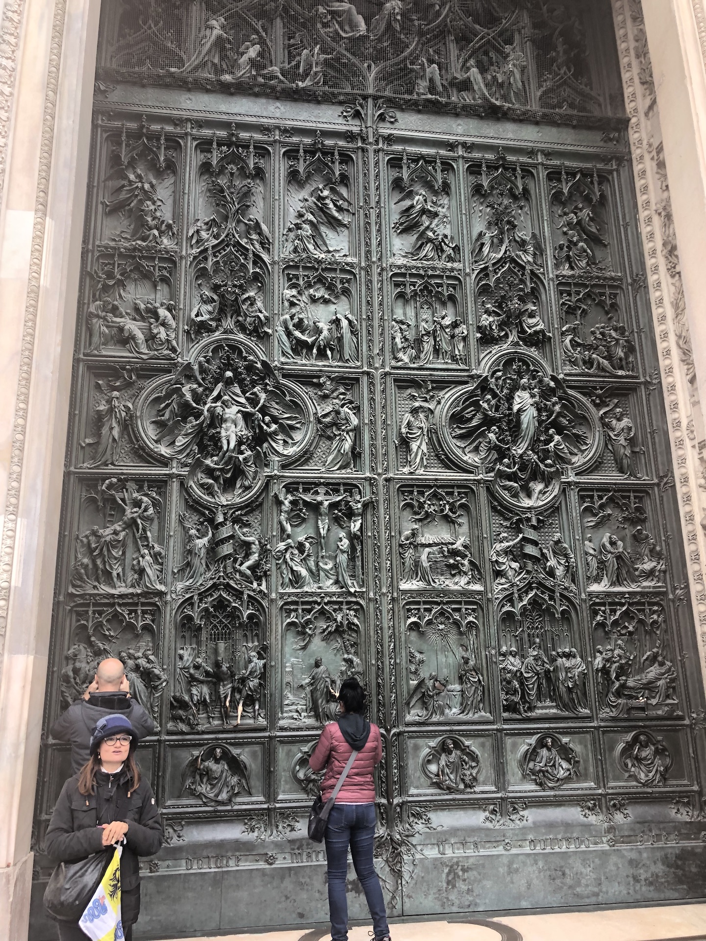 The queue to enter the cathedral also backs up, in the rain, along on these elevated paths. Once in a while, someone tries to jump the line, only to be subjected to a severe case of stink eye from the line monitor. You don’t cross a momma bear and her cubs and you definitely don’t cut in front of my fellow adventurer.