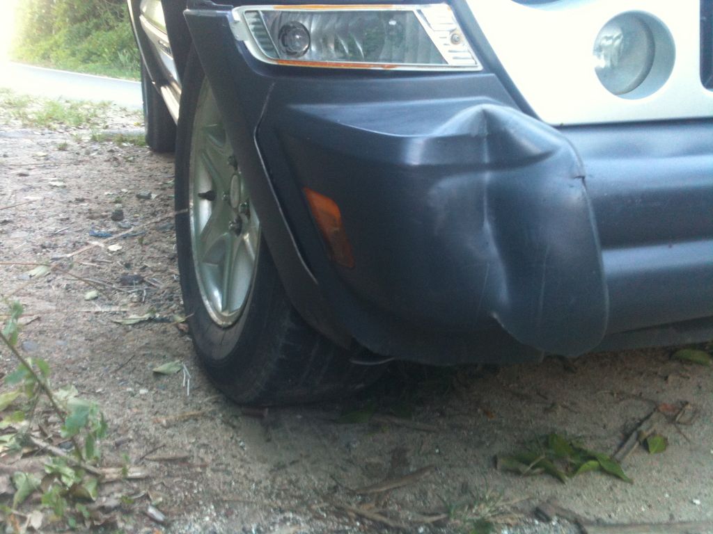 The wheel tilting out from the car and the big metal bar hanging down into the dirt seem to indicate a problem (the dented bumper was a previous customization), so we call the rental office for roadside assistance, and are soon rewarded with the arrival of a sweaty 400 pound man who speaks no English. He takes us back to the office (across the island again) where our sweet ride is replaced with another high-end automobile.
