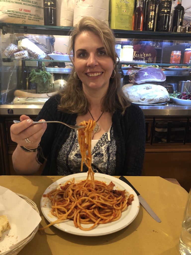 By the time we are finally back in motion, the trip the the city center seems awfully ambitious so we strike out in search of our first Italian food experience in the area near the hotel. Google leads us to a small, local trattoria that does not disappoint (save for the Roman bacon that is 96% fat). Prosciutto, cheese, pasta, it’s all good, and a great way to spend our first evening of vacation.